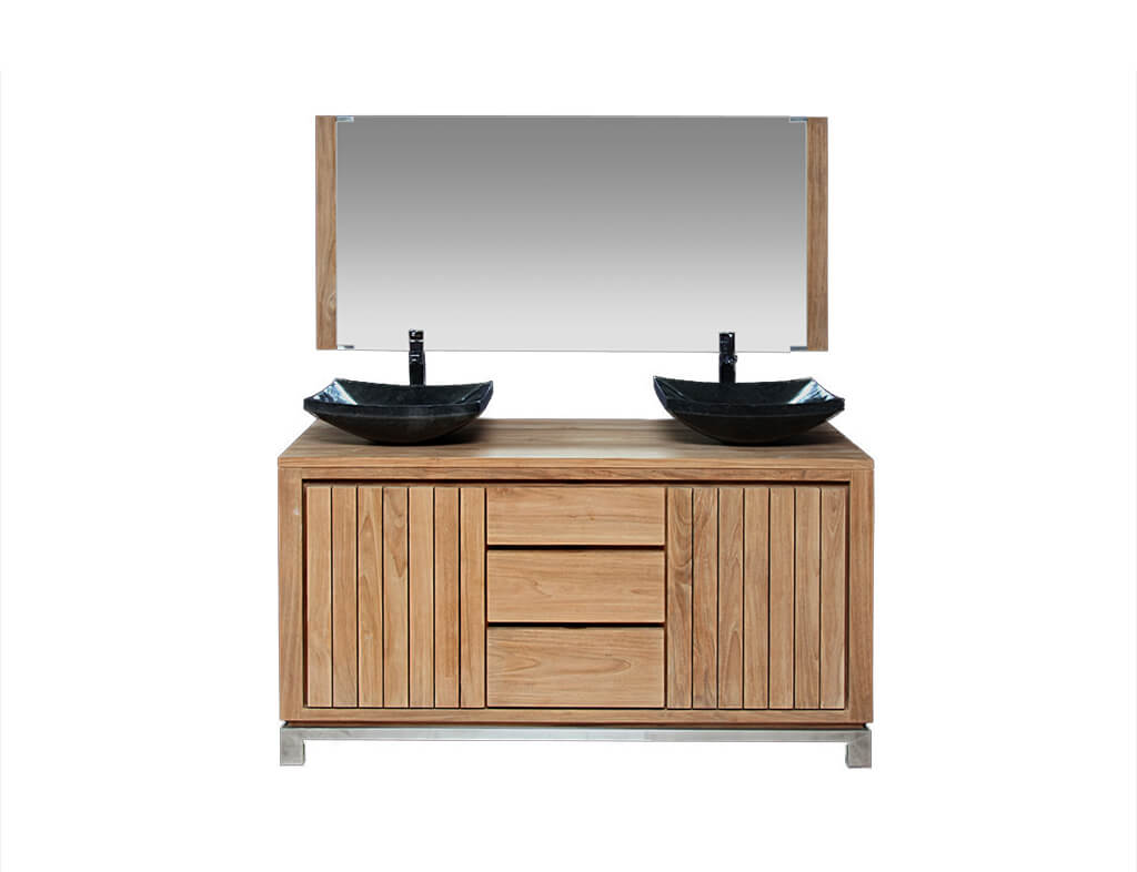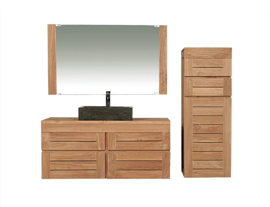 In Kombination mit anderen Teakholzmöbeln aus unserem Shop machen Sie Ihr Bad zu einer Wohlfühl-Oase, die Sie am liebsten gar nicht mehr verlassen möchten. Wir empfehlen eine Kombination mit unserem Doppelwaschtisch Milano 02 im passenden Design. Diese Serie bieten wir auch als Set an.